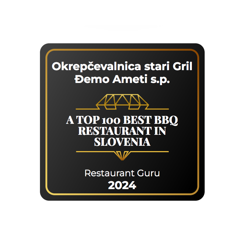 Smo ponosni prejemniki priznanj Restaurant Guru 2023 - Najboljša BBQ restavracija in Restaurant Guru 2024 - Top 100 najboljših BBQ restavracij v Sloveniji.